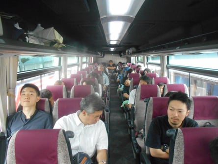 本社前でバスを待っています。