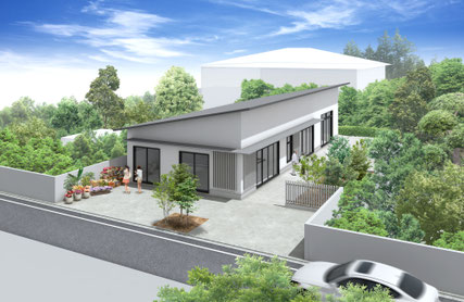 1.地域の会合等に使用する多目的室、2.憩いの場となる喫茶室、3.花屋さんの3つの用途が入った複合建物になります。
