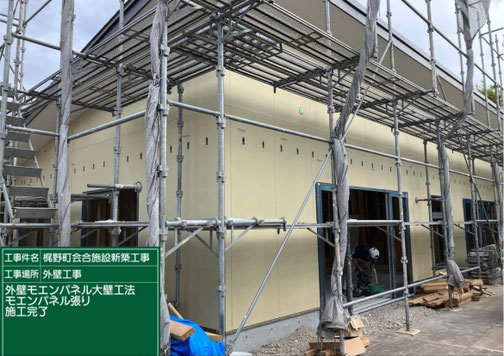 屋根工事が完了し、外壁工事及び内装工事を順調に行っております。